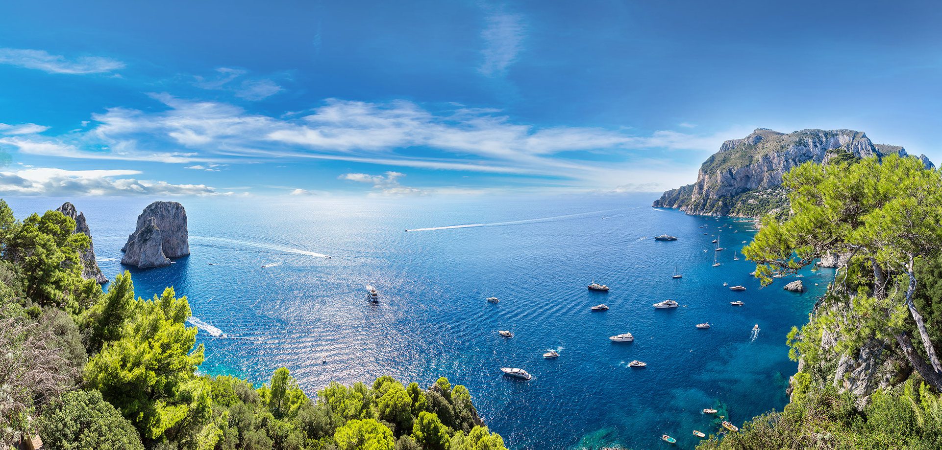Το Κάπρι, μικρό νησί στον κόλπο της Νάπολης, είναι διάσημο για την απαράμιλλη φυσική του ομορφιά και την κοσμοπολίτικη ατμόσφαιρα. Γνωστό για τους βράχους Faraglioni και τη μαγευτική Γαλάζια Σπηλιά, προσελκύει επισκέπτες από όλο τον κόσμο. Οι απόκρημνοι βράχοι, οι σπηλιές όπως η Γαλάζια Σπηλιά και οι γραφικοί οικισμοί συνθέτουν ένα μοναδικό τοπίο. Από την αρχαιότητα υπήρξε καταφύγιο αυτοκρατόρων και σήμερα αποτελεί πολυτελή προορισμό που συνδυάζει μεσογειακή γοητεία, ιστορία και κοσμοπολίτικο χαρακτήρα.