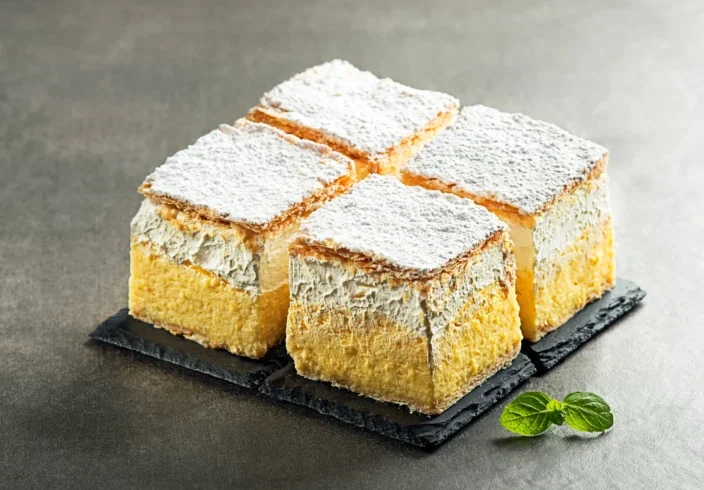 Το απόλυτο σήμα κατατεθέν είναι το Kremna rezina (Bled Cream Cake), ένα πεντανόστιμο γλυκό με στρώσεις κρέμας και σφολιάτας που πρέπει οπωσδήποτε να δοκιμάσετε στο καφέ του Park Hotel. Η κουζίνα της περιοχής βασίζεται σε τοπικά υλικά των Άλπεων, όπως φρέσκια πέστροφα από τη λίμνη, κυνήγι και τοπικά τυριά. Μην παραλείψετε να δοκιμάσετε το παραδοσιακό σλοβενικό κέικ Potica και τα εξαιρετικά κρασιά της περιοχής.