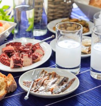 Μεζέδες τσιπουράδικου, πηλιορείτικες πίτες, καπνιστά αλλαντικά, γλυκά του κουταλιού και κρασιά Θεσσαλίας.